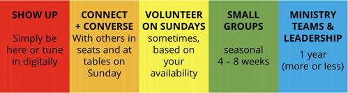 This looks like intentional connection both in the rows in worship, and sticking around for our meal times. Sitting down at a table with strangers is a thing – it takes a commitment to engage. Even to engage in that question/discussion time at the beginning of worship each week, we can kind of nod our way through that (which is absolutely okay – we’ve all been there), or we can choose to engage a bit more, bring who we are – some reality and vulnerability into those few moments. We’re acknowledging that this is another level of engagement.