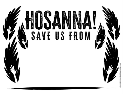 Print out a "Hosanna...save us from..." poster and bring it with you on Sunday.