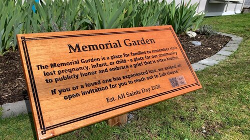 The Salt House Memorial Garden is a place for families to remember their lost pregnancy, infant, or child - a place for our community to publicly honor and embrace a grief that is often hidden. If you or a loved one has experienced loss, we extend an open invitation for you to reach out to Salt House.